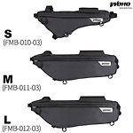 지금 프레임에 매달려 있는 가방이다. 이 셋 중 L 사이즈. FMB-012-03 되시겠다. 일단 널직하다. 사이즈가 사이즈인터라 뭐가 많이 들어간다. 제조사 자료 기준 용량 4.7L, 크기는 51 x 15 x 7 로 단위는 cm 를 사용하겠다. 중량은 199g 이라 한다.가방 하단부에 뭔가를 매달수 있는 D형 고리가 있으나 아직 사용을 해보진 않아서 느낌을 적지는 않겠다, 지퍼는 가방의 양 측면에 위치해 있으며 한쪽은 가방의 대부분의 공간을 사용하는 지퍼, 한쪽은 간단하게 수납이 되도록 좁은 공간을 사용하며, 두 공간은 독립되어 있어 수납물이 섞이거나 흐트러질 일은 없다. 57사이즈의 로드 프레임에 매달면 대충 이렇다. 대강 요련 느낌이다. 1.5리터 혹은 1리터 페트병을 우겨 넣었을때 병 주둥이가 가방..